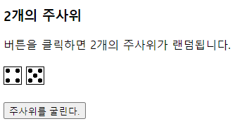 버튼을 클릭하면 2개의 주사위가 랜덤됩니다.<br><br>